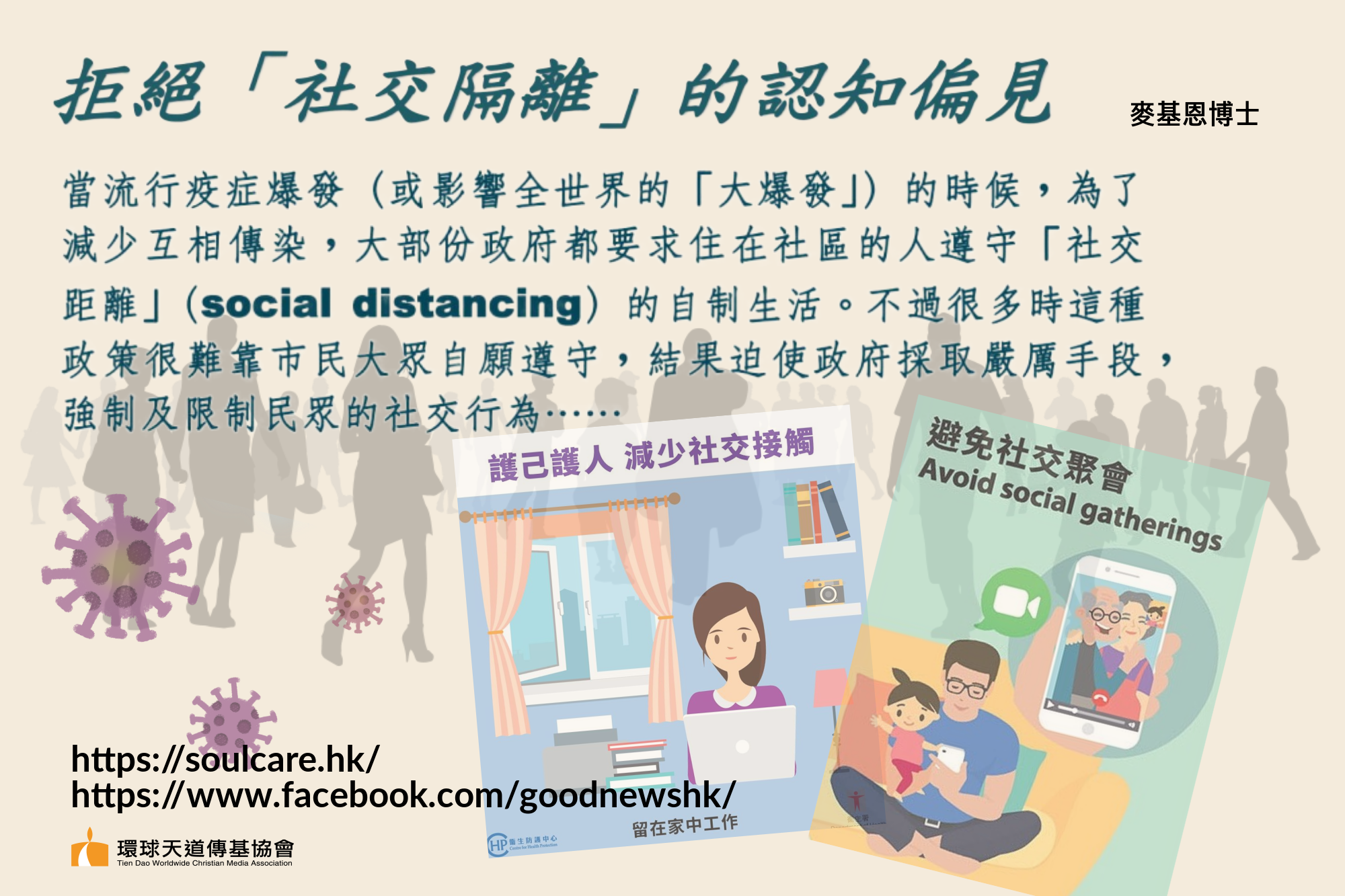 以上只是舉出幾種心理認知偏見來解釋為何在疫情之中,仍有不少人不能遵守社交距離的要求。當然這問題還會有其他社會心理因素影響,例如:人類是屬於社群動物,很自然地喜歡群體活動,不甘於單獨生活。另外,也有一些人的性格喜歡冒險及不受約束,以致作出走法律罅甚至反社會的行為。故此,政府若要成功執行這類社會距離或隔離的措施,應該留意及防範大眾的心理反應。