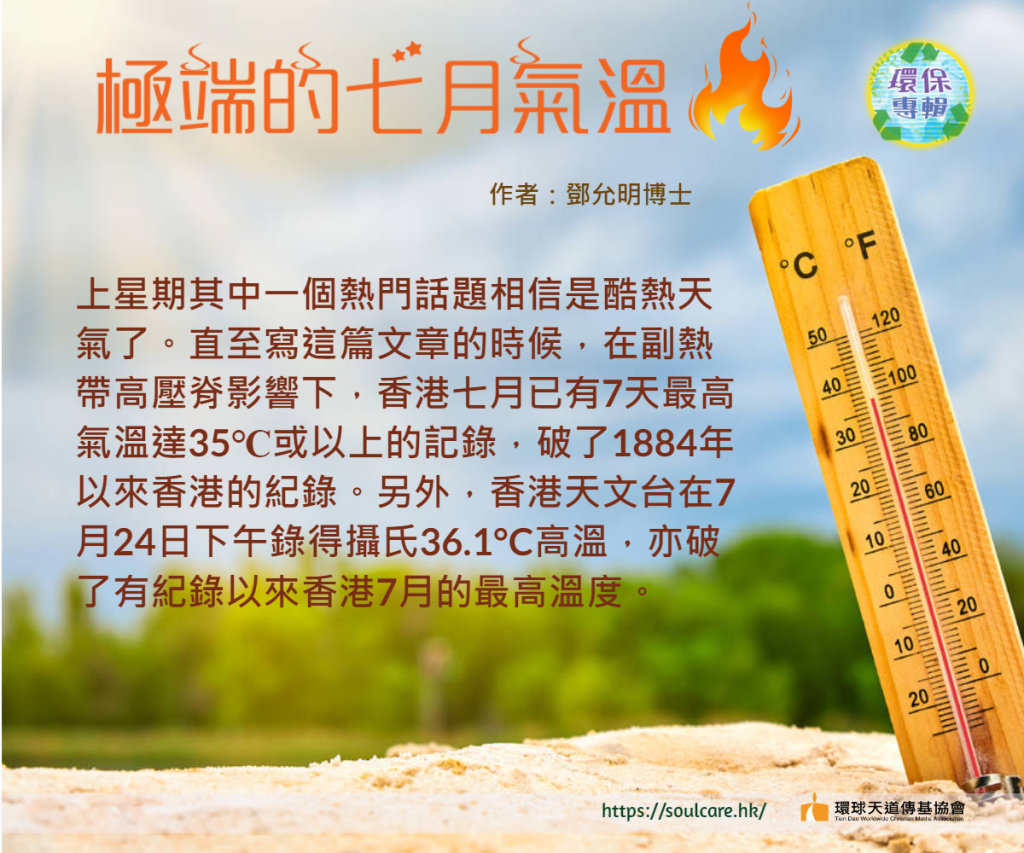 上星期其中一個熱門話題相信是酷熱天氣了。直至寫這篇文章的時候,在副熱帶高壓脊影響下,香港七月已有7天最高氣溫達35℃或以上的記錄,破了1884年以來香港的紀錄。另外,香港天文台在7月24日下午錄得攝氏36.1°C高溫,亦破了有紀錄以來香港7月的最高溫度。今年2022年又是有紀錄以來香港最熱的一個「大暑」日。本月已錄得18天「熱夜」(寫文章的時候),有很大的機會打破2020年創下七月有21天「熱夜」的紀錄。今年七月酷熱天氣破了很多紀錄!