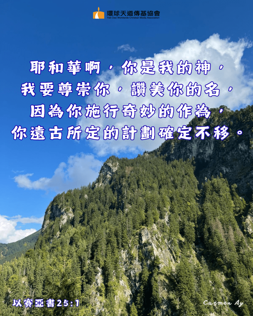心靈雋語2026 On 2026-01-052026-04-10 由tdwwhk撰寫In 心靈雋語2026發表留言 April 以賽亞書25:1 馬太福音5:7 March 箴言11:5 以賽亞書40:8 哥林多前書8:3 撒母耳記上2:2 路加福音1:46-47 February 西番雅書3:17上 詩篇7:1 帖撒羅尼迦前書5:5上 詩篇8:4 January 約翰壹書4:19 詩篇27:1上 腓立比書4:13 箴言22:4 詩篇29:11