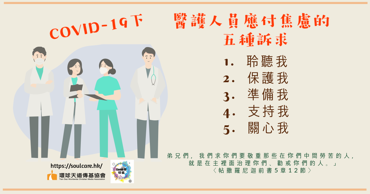 雖然並不是每位醫務人員都有上述各種焦慮,但為了整個專業能發揮應有功效,他們提出五大訴求: